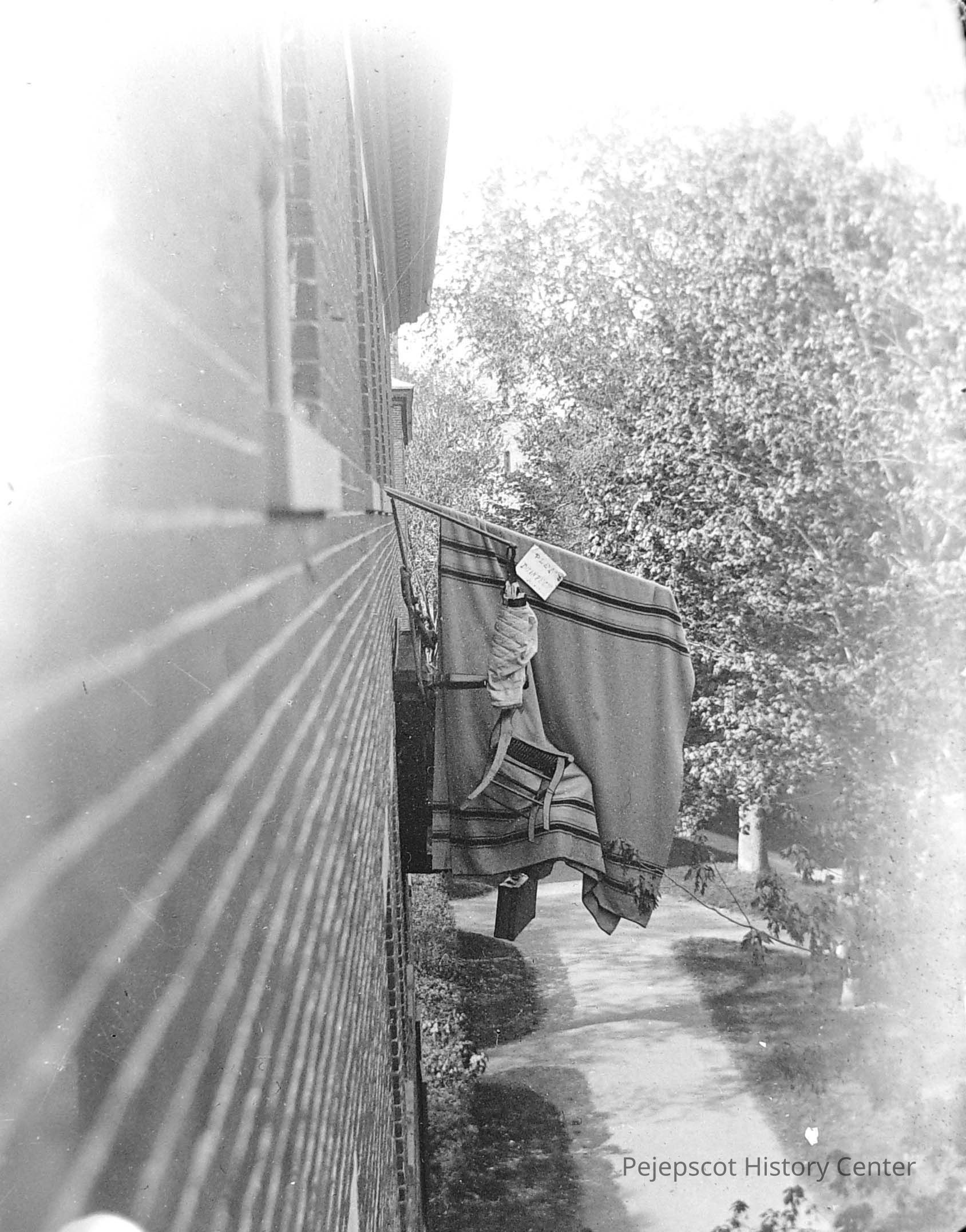 A glass plate negative with a photograph of the side of a house. "CD-R "Glass Negs #2" #74" Undated.