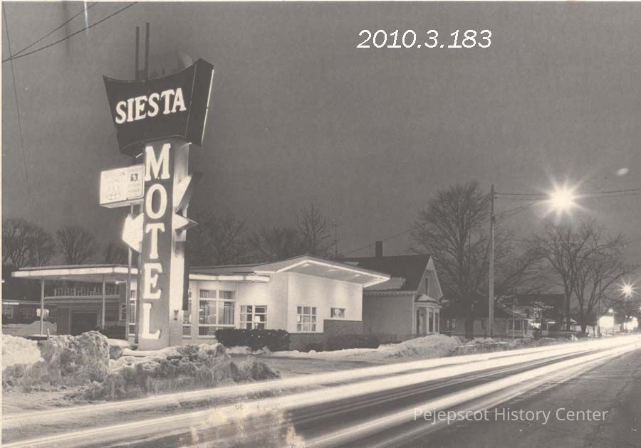 A B/W photograph of the Siesta Motel which had just been sold to Robert St. Pierre. The photo was taken in the winter time. Photo published 1/7/1969. Undated