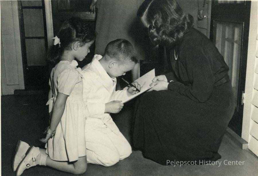 A B/W photograph of signing the guest book at Frances and Robert Pletts wedding. Undated