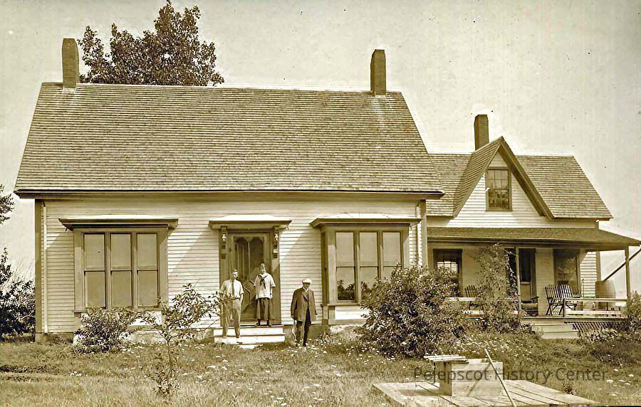 A B/W photograph of unknown people in front of the Singe Fitzpatrick House. Undated