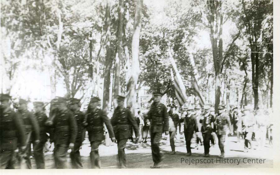 A B/W photograph of soldiers at the Brunswick Bicentennial parade. Dated 1939.