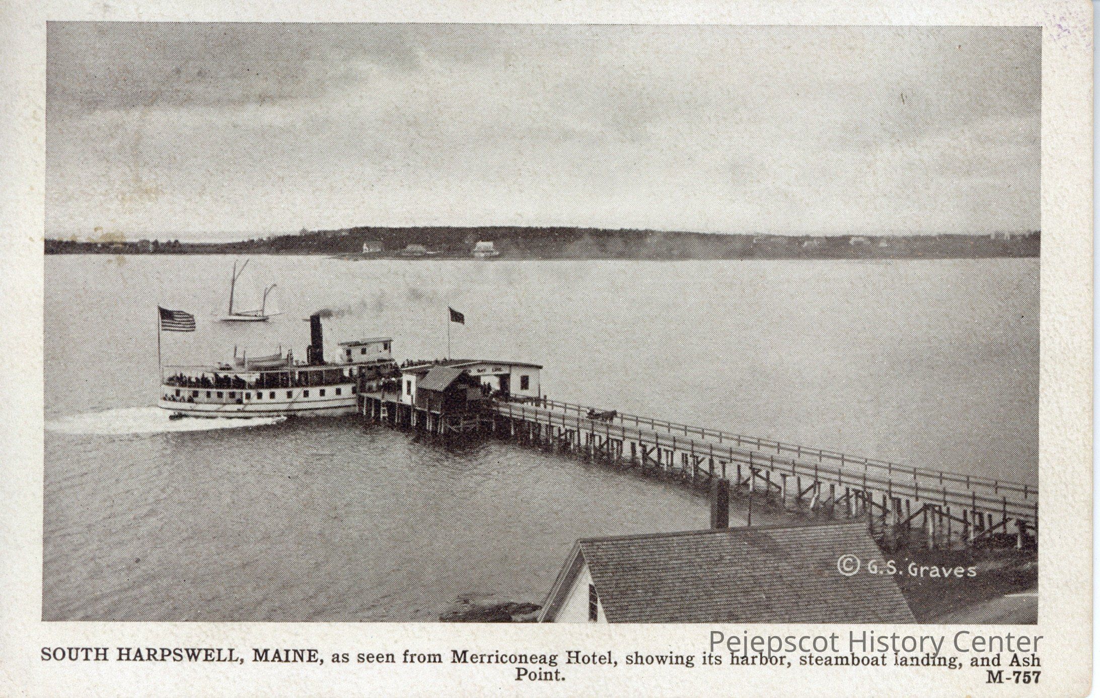 Black and white photo post cards of South Harpswell, Maine, as seen from Merriconeag Hotel, showing its harbor, steamboat and Ash Point.Collection