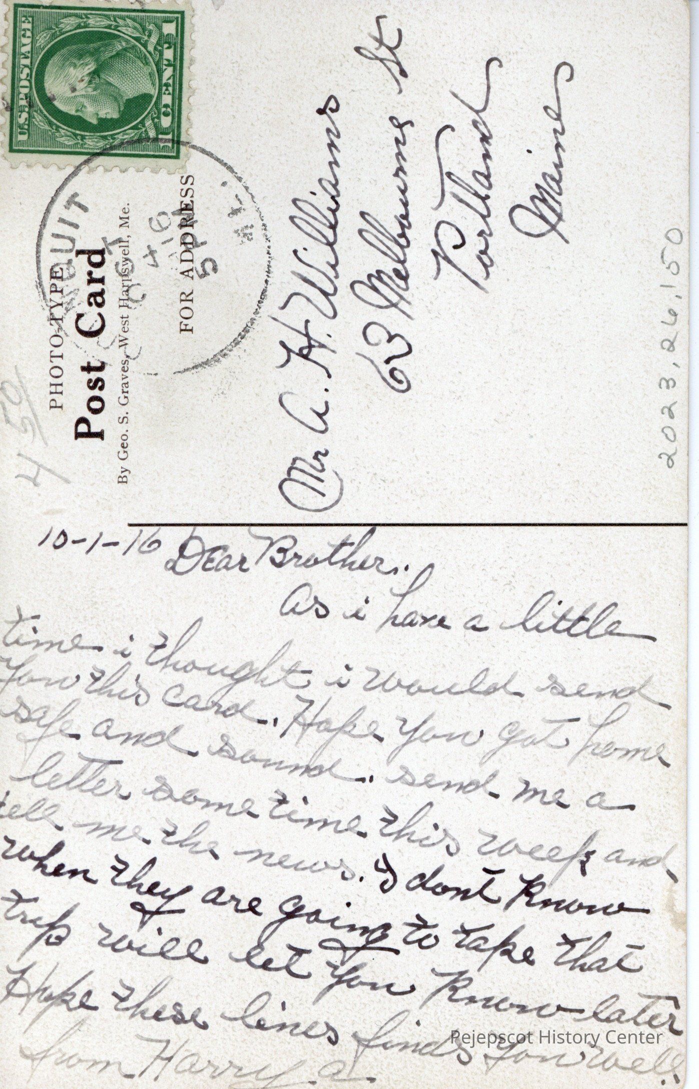 Geo. S. Graves, West Harpswell, Me.Postmark