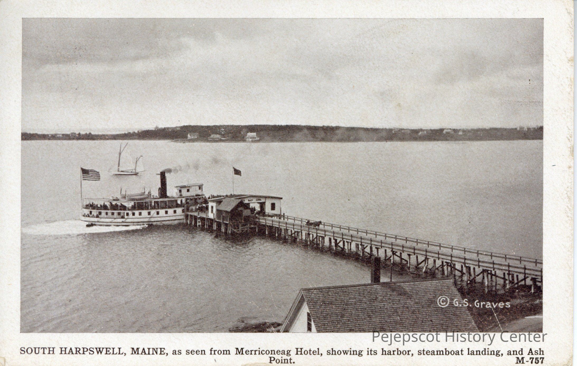Black and white photo post card of South Harpswell, Maine, as seen from Merriconeag Hotel, showing its harbor, steamboat landing and Ash Point.Collection