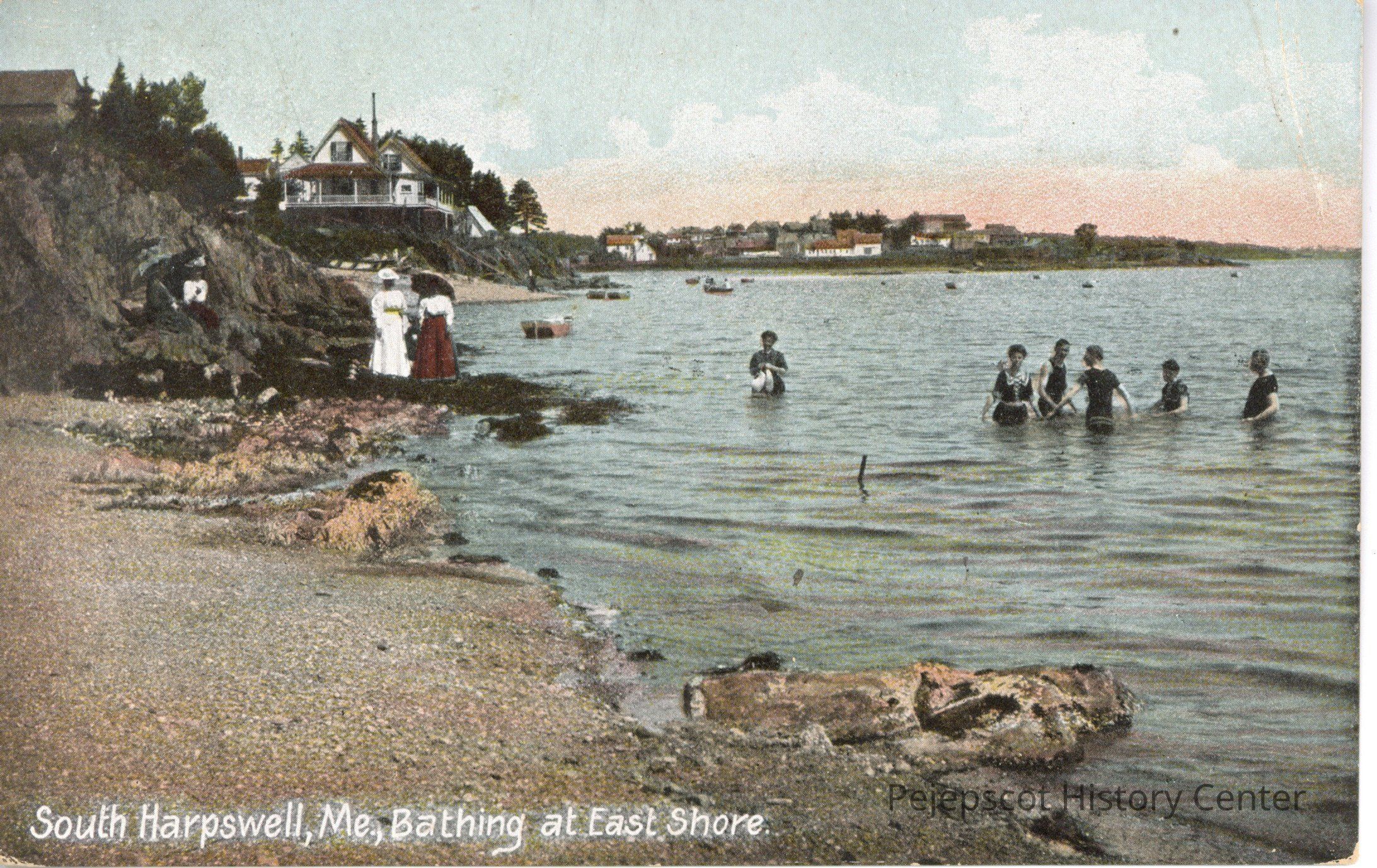 Color photo post card of bathers at East Shore, South Harpswell, Me.Collection