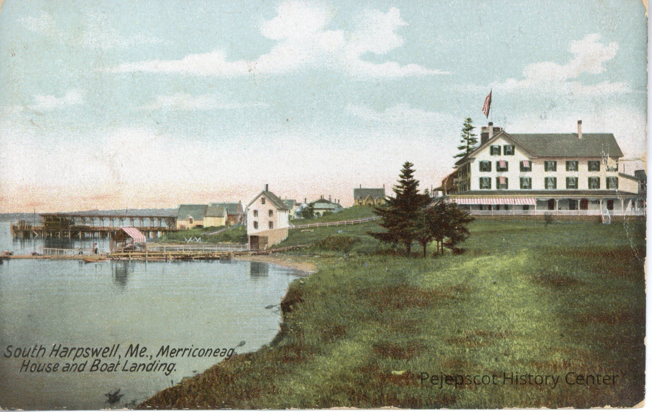 Color photo postcard of the Merriconeag House and Boat Landing, South Harpswell, Me.Collection