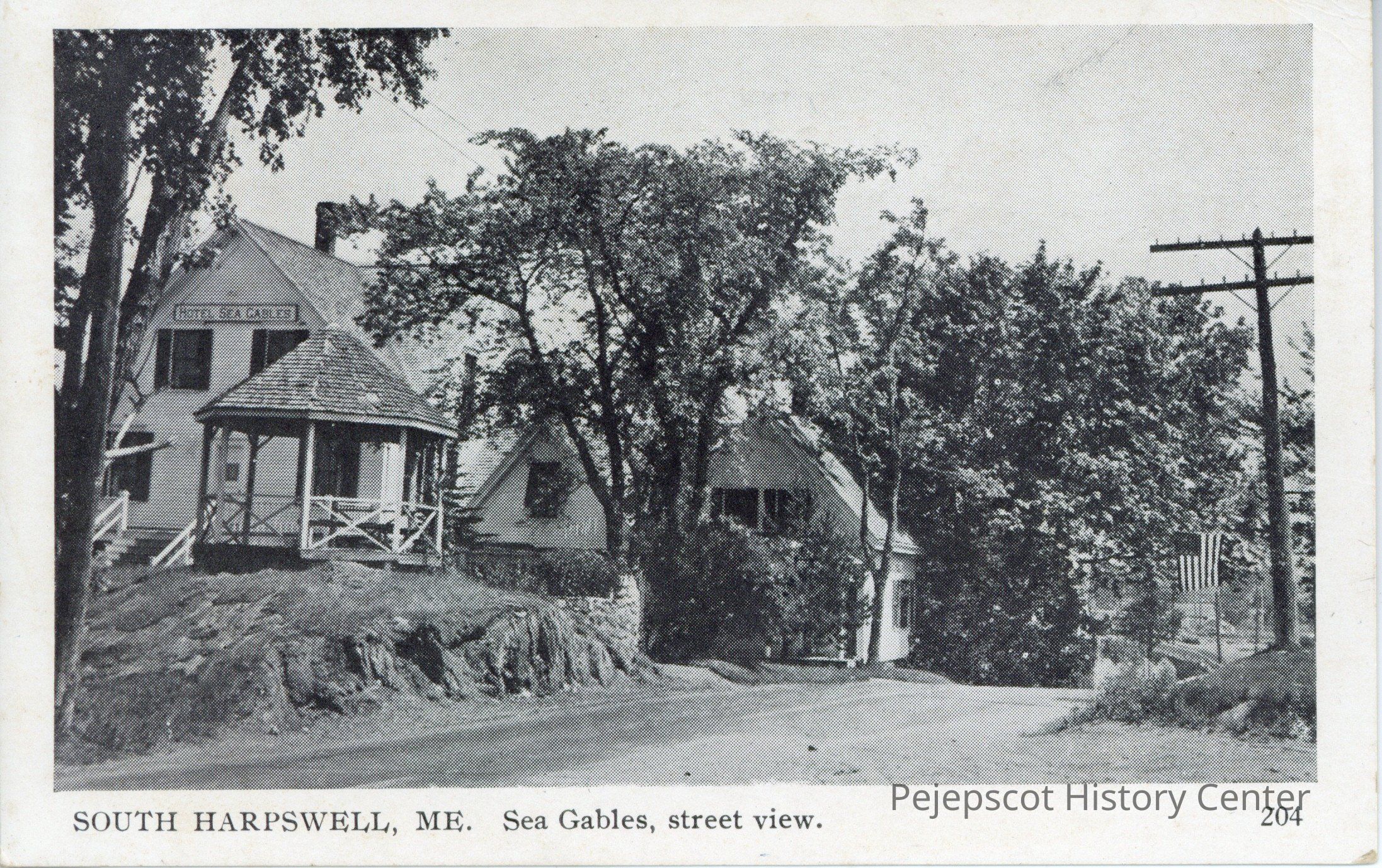 Black and white photo postcard of a street view of Sea Gables, South Harpswell, Me.Collection