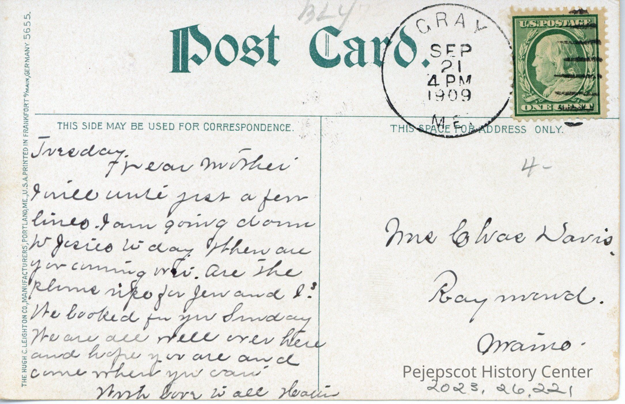 1909-09-21; 4 PMPostmark Place