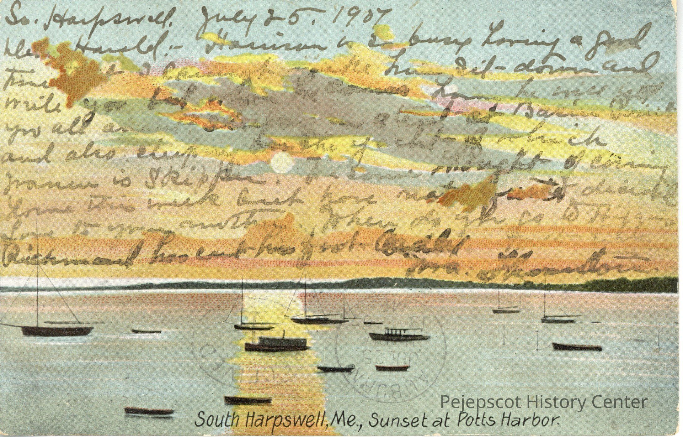 Color photo postcard of sunset at Potts Harbor, South Harpswell, Me.Collection
