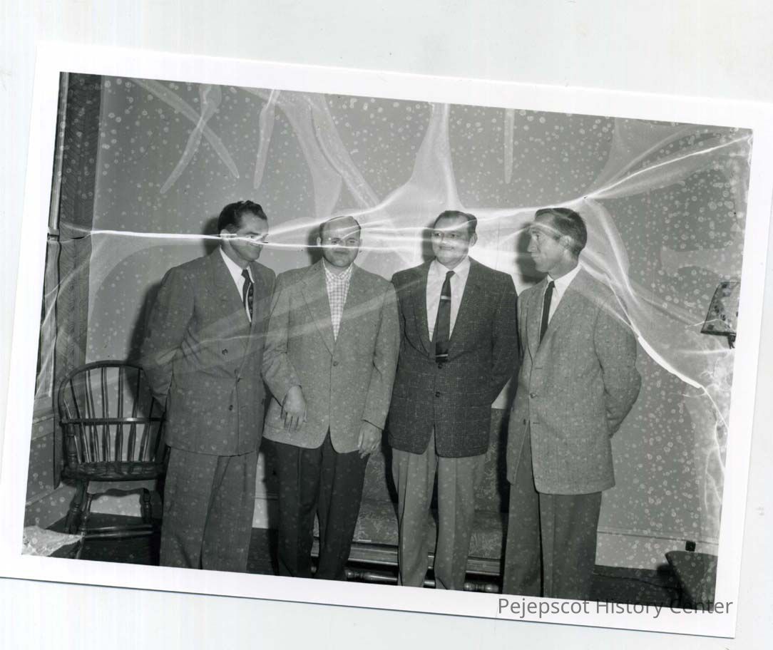 Speakers for the Brunswick High Sports Night on June 7, 1955 pose for the camera. They are: Warren Pearl, Raymond Dallaire, Norman Marriner, and Edmund Coombs.