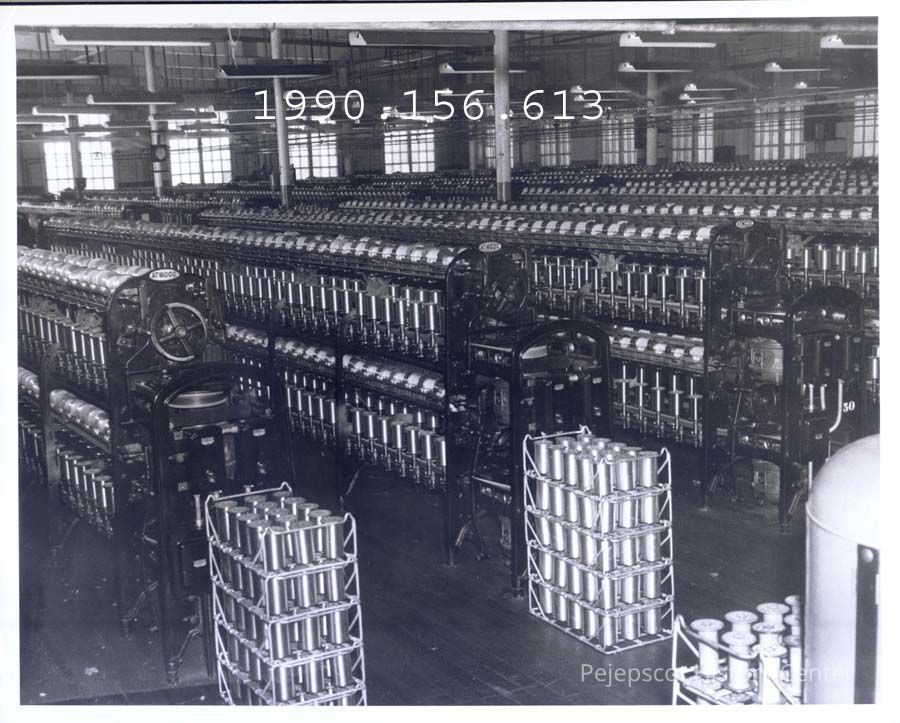 A B/W photograph of the Spinning Room at Verney Mill. Undated