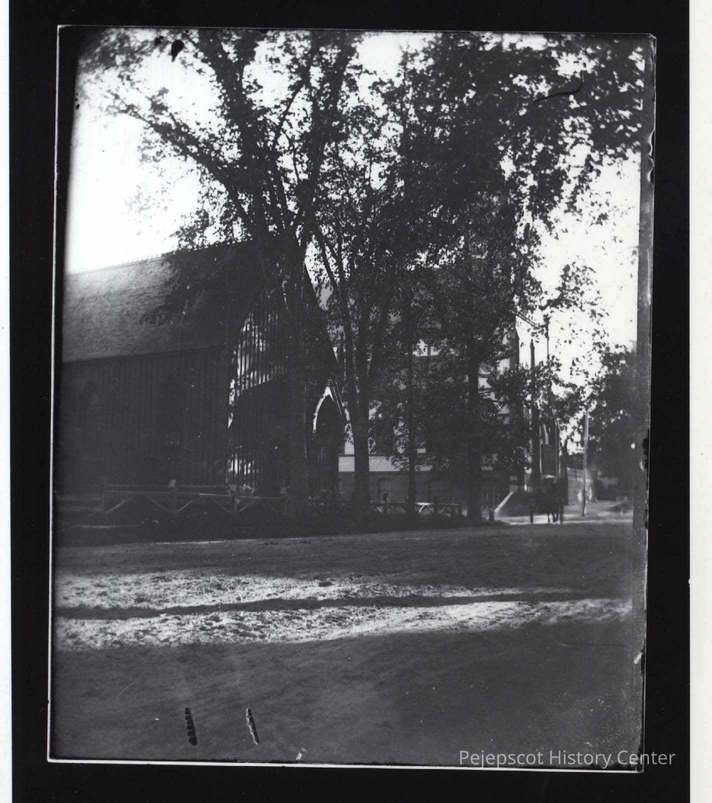 Photo of St. Paul's and St. John's Churches, Pleasant Street, Brunswick, Maine. St. Paul's in foreground. This photo was taken prior to the 1912 fire that destroyed St. John's Curch.