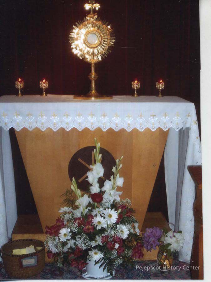 A color photograph of the altar at St. John the Baptist Church. Undated