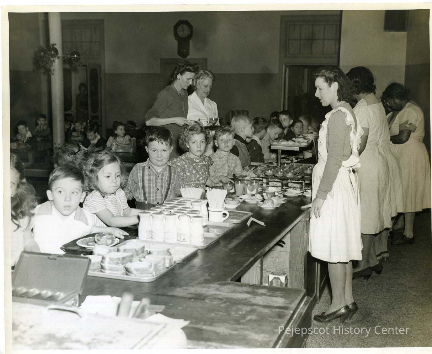 Children stand in line at the St. John's school cafeteria in the basement. This picture was taken in the 1960s and these children were members of BHS class of 1975-76. Undated