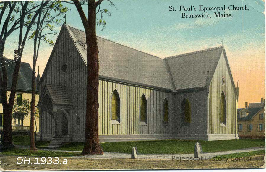 A color picture postcard of the St. Paul's Episcopal Church, Brunswick, ME. Not dated.