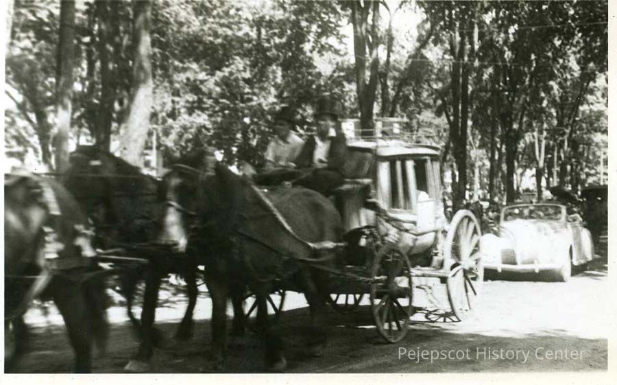 A B/W photograph of a stagecoach at the Brunswick Bicentennial parade. Dated 1939.