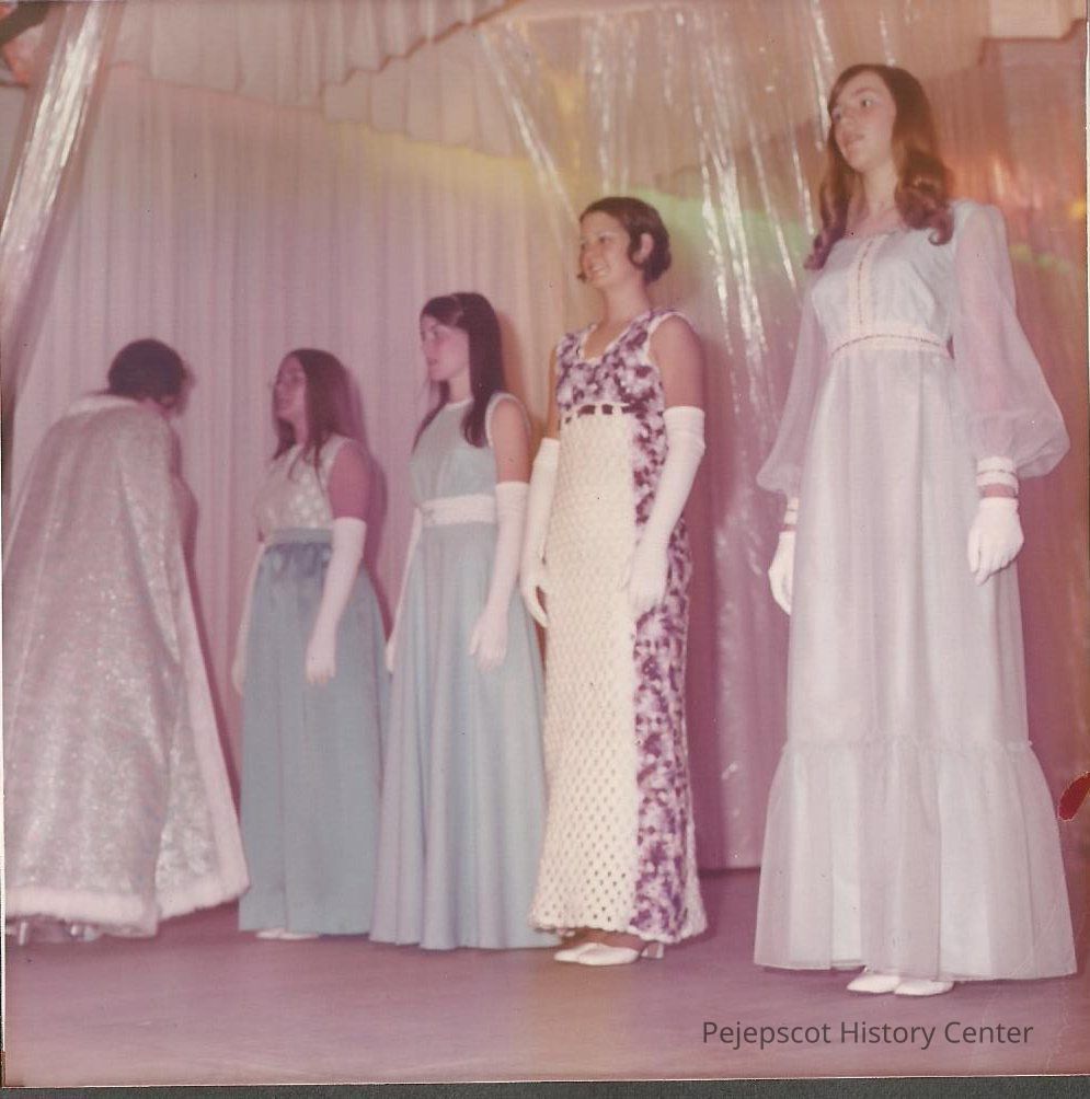 Diane Racin, Sue DiEdwardo, Sue DiEdwardo, Althea Kinney, Mary Ann Licameli standing inpossition after the series of quater turns were completed while Doris is walking to enter the stage with the rest of the Queen's.Collection