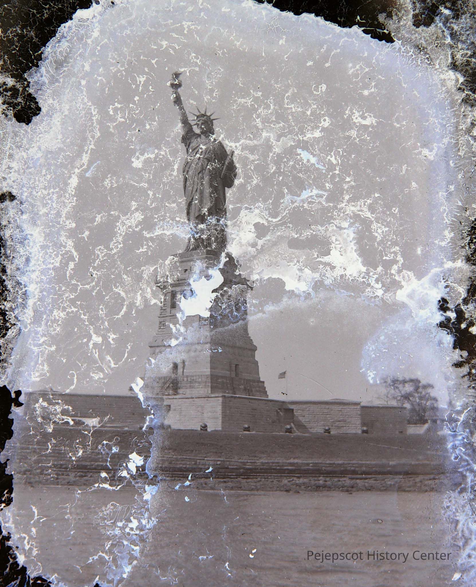 A glass plate negative with a photograph of the Statue of Liberty. There are 2 more images on the CD-R. All poor quality.