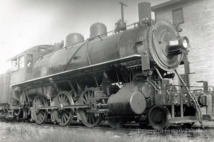 A B/W photograph of a steam locomotive. It has the number, "363" on it. Written on the back of the photo,