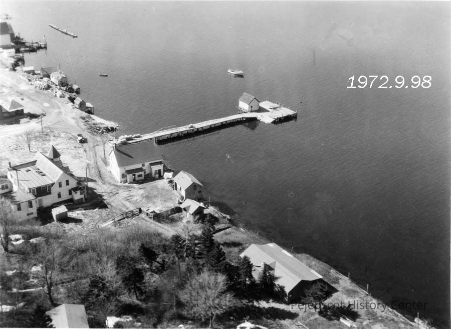 The Steamboat Wharf on the western shore of Orr's Island, near the southern tip of the island, is shown in a photo taken in the spring of 1946. Harpswell, Maine.