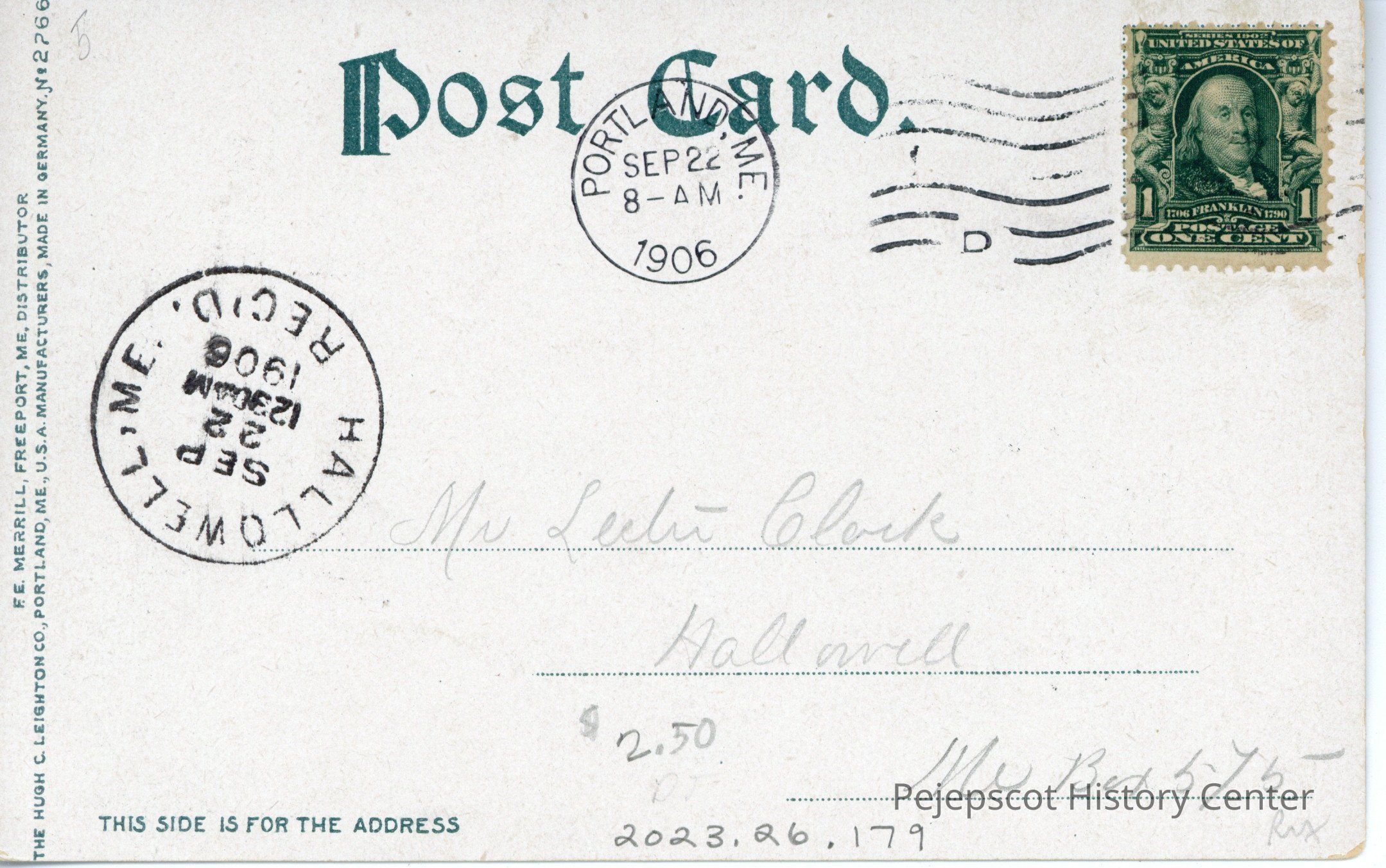 Hallowell, MaineDate and Time of Postmark