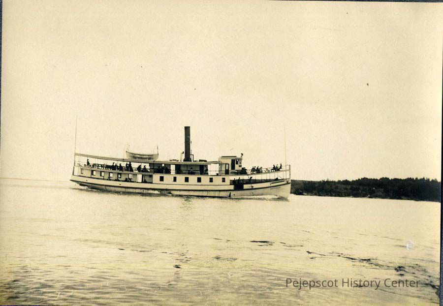 A B/W photograph of Steamer Aucocisco - Casco Bay, Maine. Undated