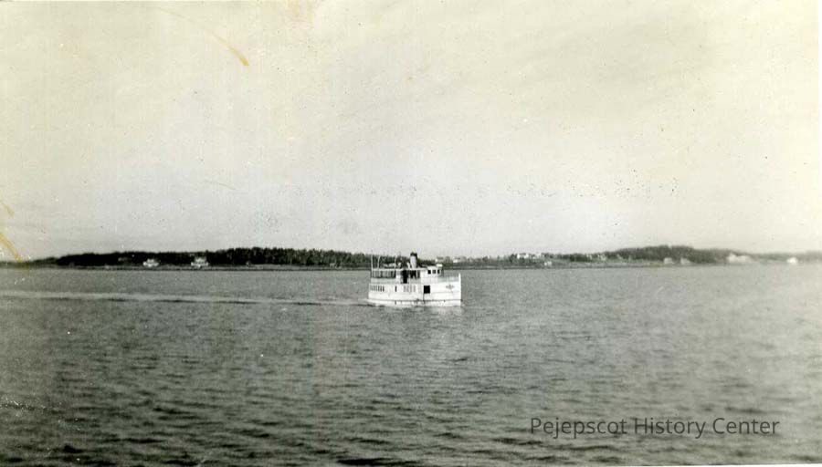 A black and white photo of the steamer Gurnet taken from South Harpswell, Maine, dated December 26, 1941.