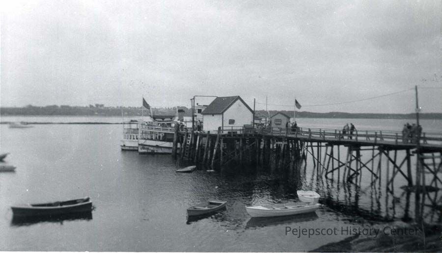 An undated black and white photo of the steamer Gurnet docked on the Steamboat wharf on the western shore off Orr's Island, Harpswell, ME