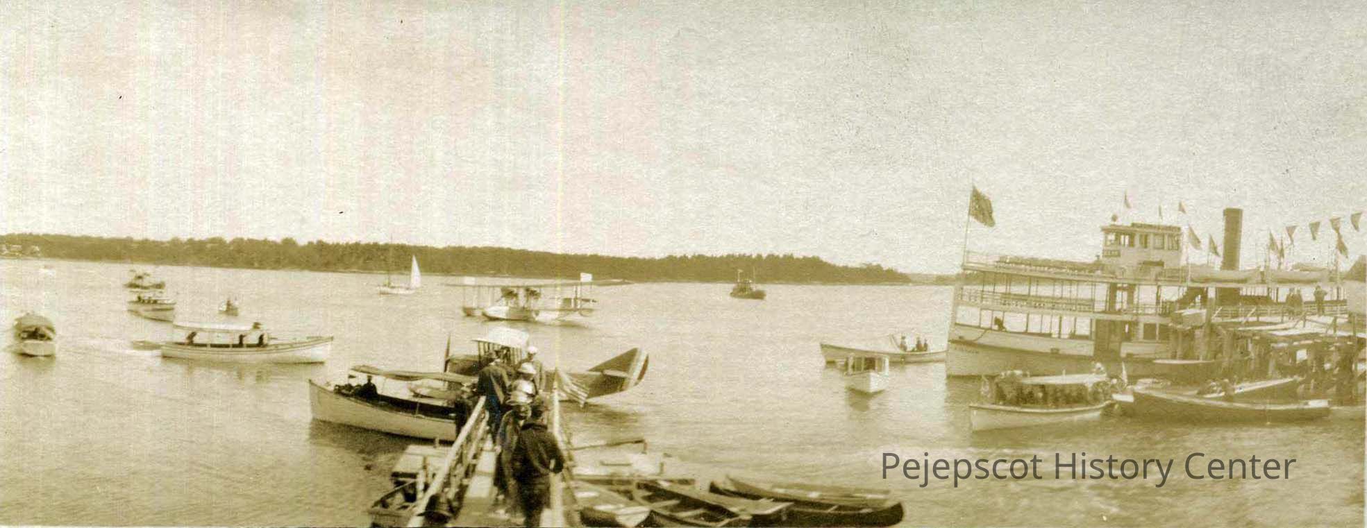 B/W postcard of steamer Pilgrim at Mere Point. Photograph taken 1925 on "Flyers Day". 1925.