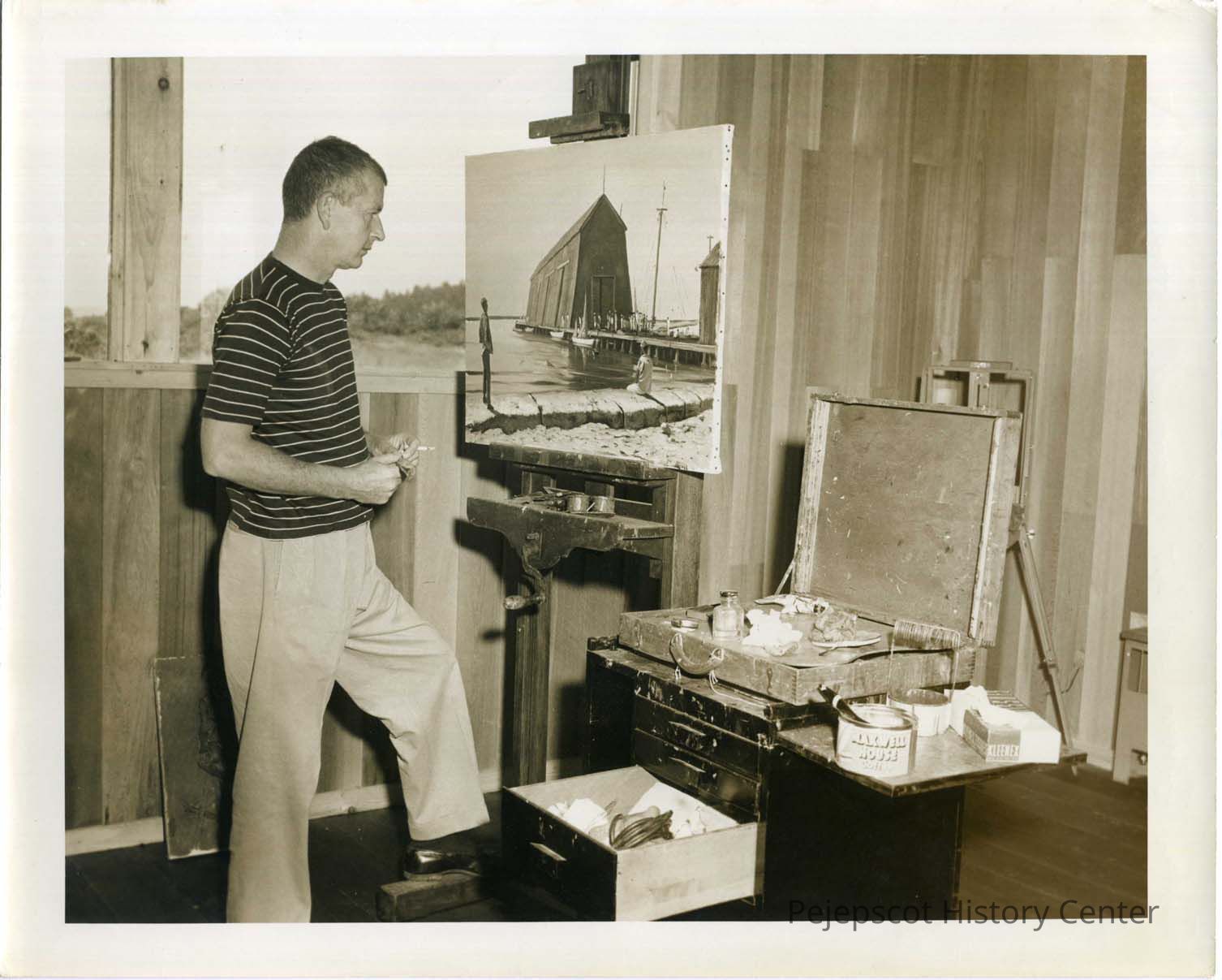 Stephen Etnier at his Harpswell studio at Basin Point. Undated