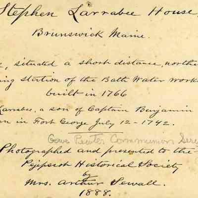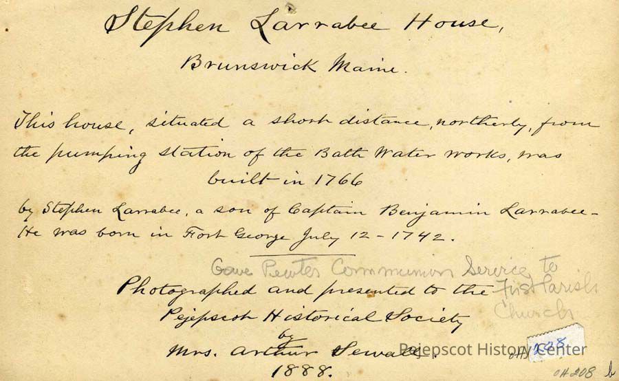 An undated photograph of the Stephen Larrabee House, situated a short distance from the pumping station of Bath Water Works. It was built in 1766.