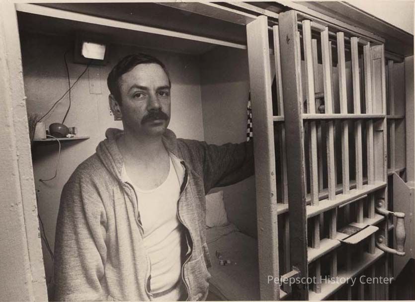 A black and white photo of Steve Clark in the doorway of a prison cell was published in The Times Record in Brunswick, Maine, on 5/31/1990.