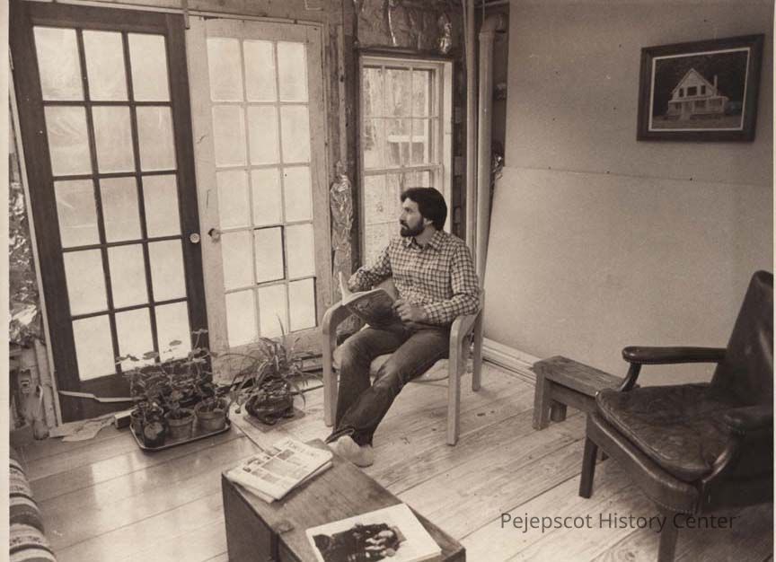 A B/W photographic view of Steven Pizzolato looking out at an area set aside for a greenhouse. This photo was published 4/11/1983.