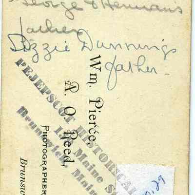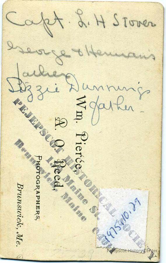 A black and white photograph of Captain L.H. Stover. Back reads "George & Herman's father. Lizzie Dunning's father." Undated.
