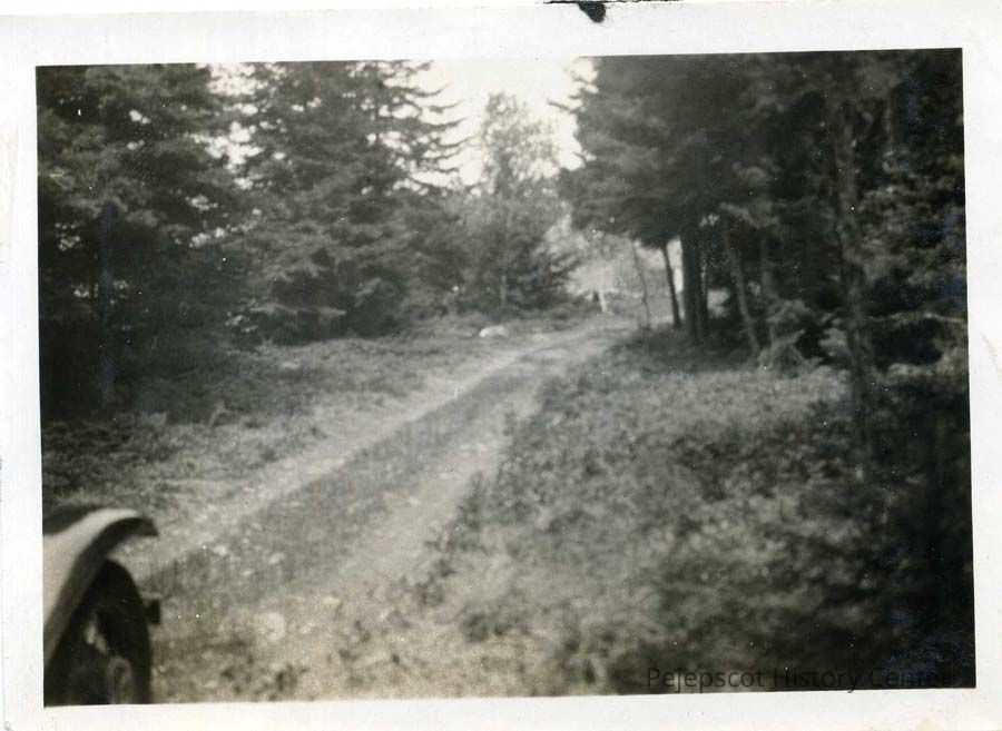 A black and white photograph captioned "Stover Farm. Road in from present Rte 123. 1930." Stover's Farm is in West Harpswell, ME. Dated 1930.