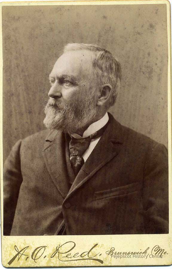 A black & white photograph of Lemuel Hinckley Stover, father of Lizzie (1825-1910). Lemuel also spent some time at sea. Taken at A.O Reed, Brunswick, ME.