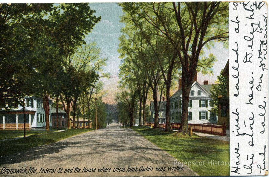 Color postcard of the Harriet Beecher Stowe house, 63 Federal Street where "Uncle Tom's Cabin" was written.