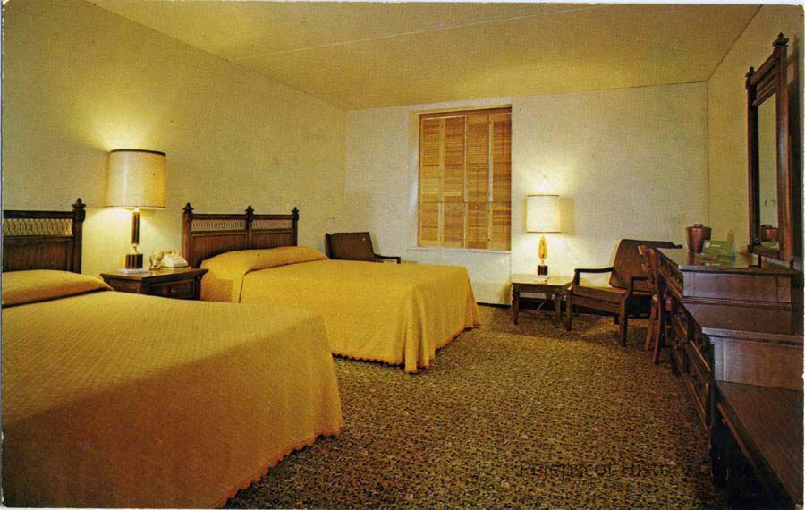 An undated color postcard shows a room at the Stowe House and Motor Inn in Brunswick, Maine.Collection
