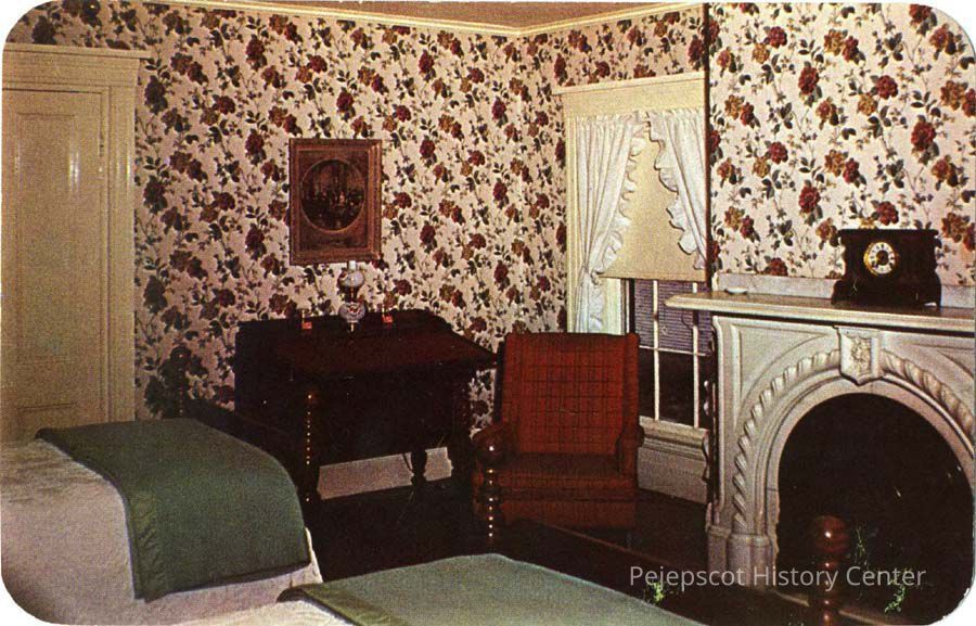 An undated color postcard shows one of the rooms at the Stowe House and Motor Inn in Brunswick, Maine.Collection