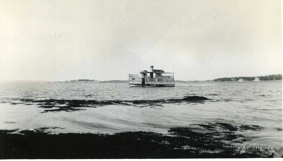 A black and white photo of the streamer Gurnet near South Harpswell, Maine dated January 24, 1942.