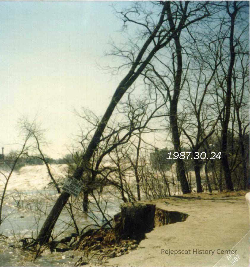 A color photograph of the area for parking for 19 Summer Street, Topsham, ME. Flood of 4/2/1987