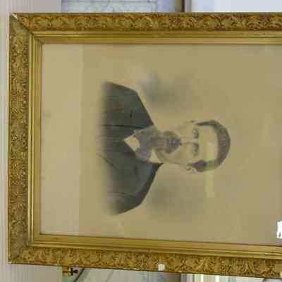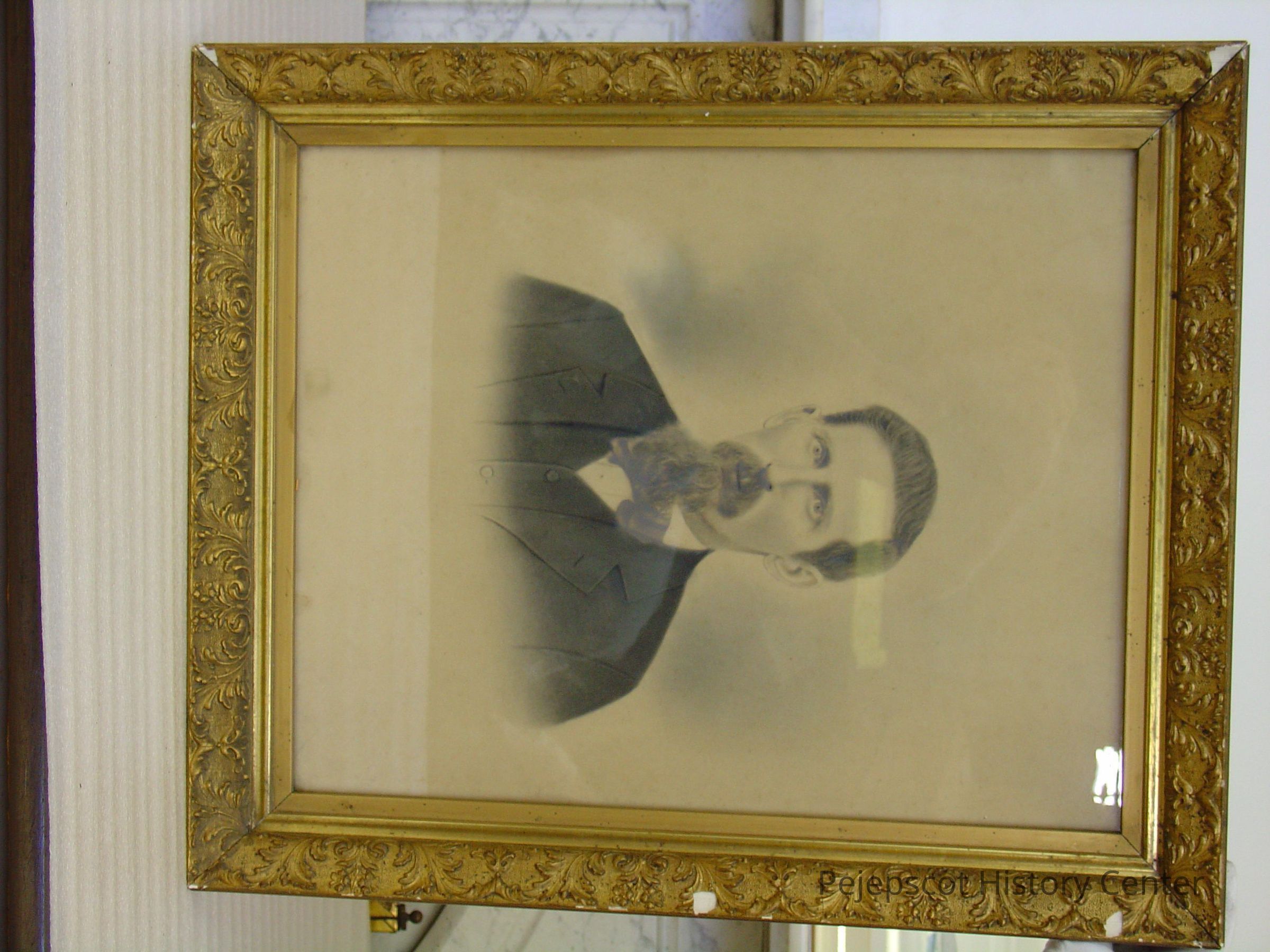 Framed undated B&W photo of Sumner L. Holbrook. Wood, gilt molded plaster frame. "Paul Curtis" written in pencil on the back. Overall size: 60.75 cm h x 50.75 cm w x 6.25 cm d.