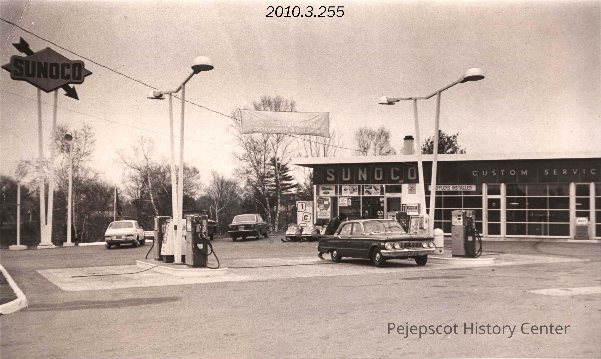 A B/W photograph of a Sunoco gas station. Written on back of the photo, "Interstate Sunoco." No clipping. Undated