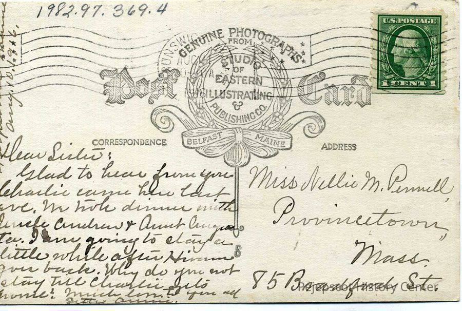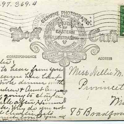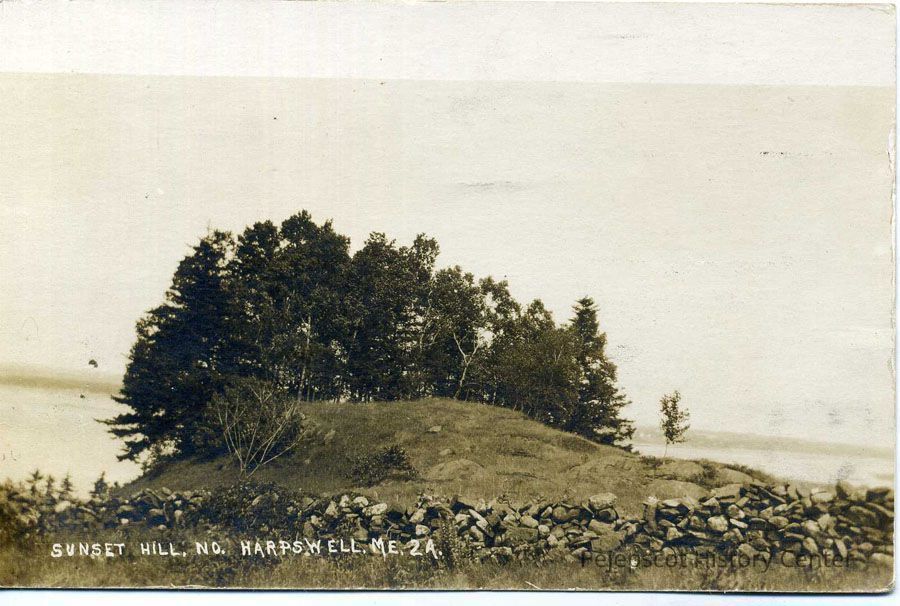 B/W postcard of Sunset Hill, North Harpswell. Postcard to Miss Nellie M. Pennell, 85 Bradford Street, Provincetown, MA from her sister, Annie. Postmarked Brunswick, August 11, 1916.Collection