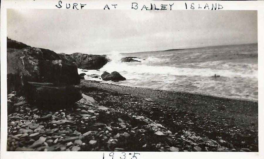 A B/W photo of the surf at Bailey Island. Undated