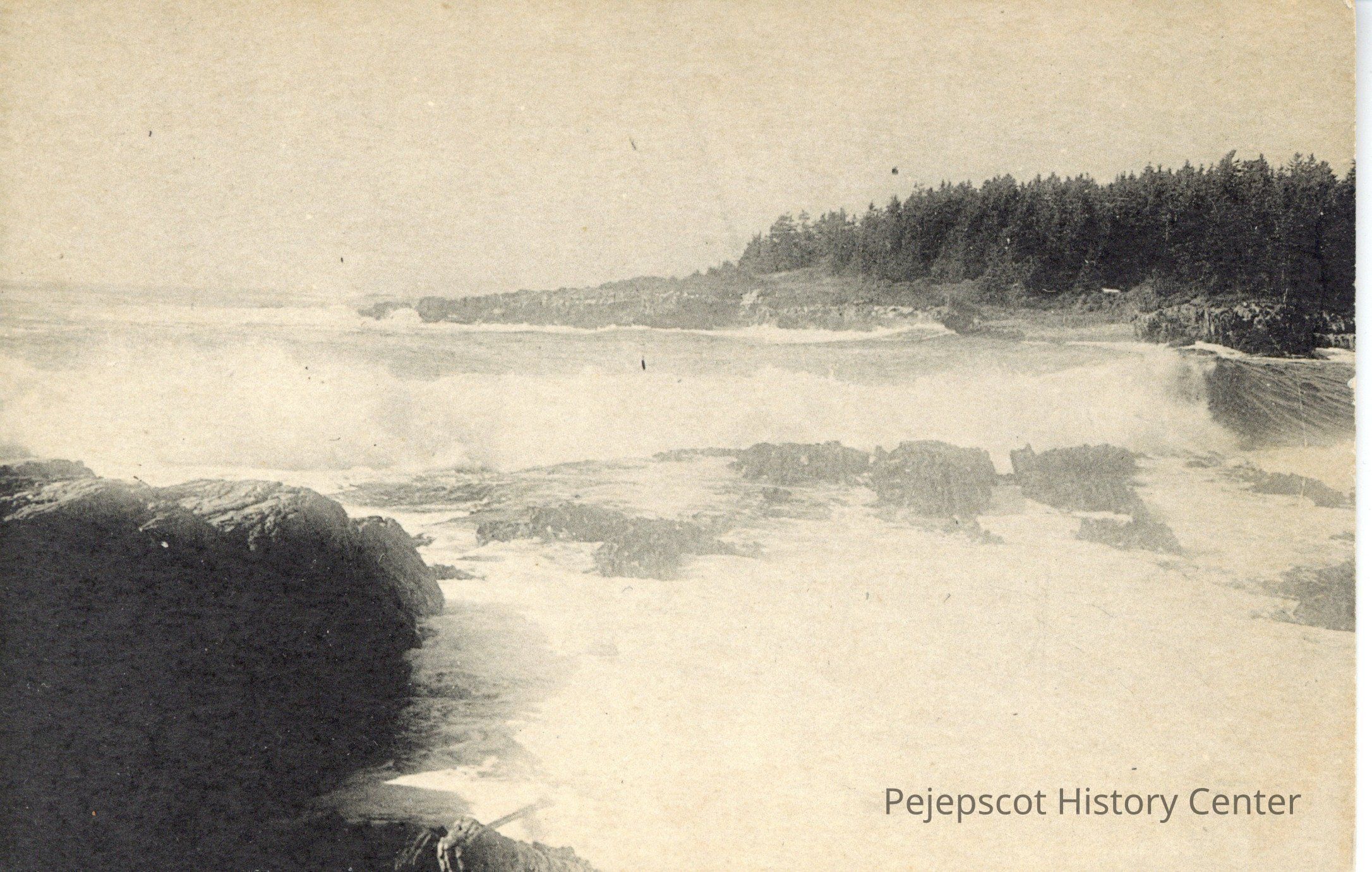 Black and white photo postcard of the surf at Little Harbor, Bailey Island, Maine.Collection