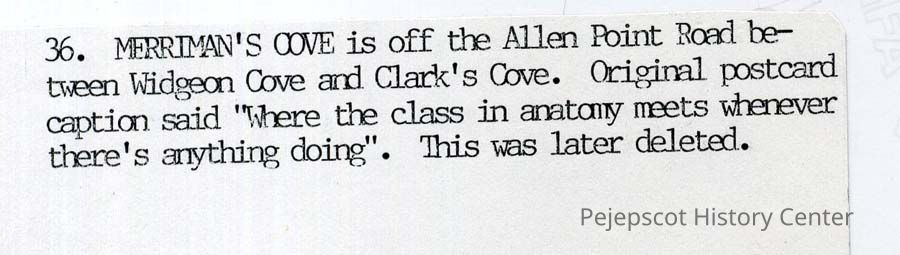 A color print copy of Merriman's Cove off Allen Point Road between Widgeon Cove and Clark's Cove. For More info see back of photo. UndatedCollection