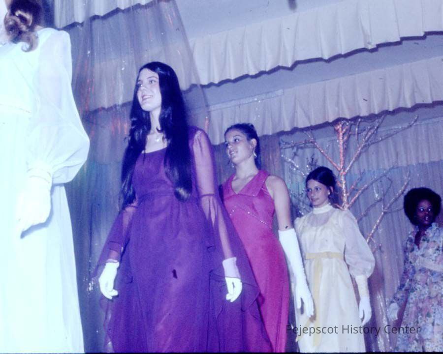 A 35 mm color slide of four contestants in the 1973 Miss Teen Queen Pageant. Contestants are from right to left, Diana Johnson, Gale Cowley, Kathy Livernois and Barbara Aldridge. The slide is marked, "4." Undated