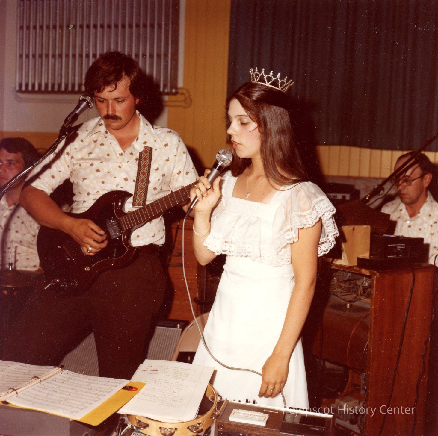 Brunswick Teen Queen Pageant, 1978. Paul Bergeron, Ken Fortin, Phyllis Gaudreau, Chanel Fortin, the Music Express playing the 15 minutes pre-show Rock 'N Roll numbers.Collection
