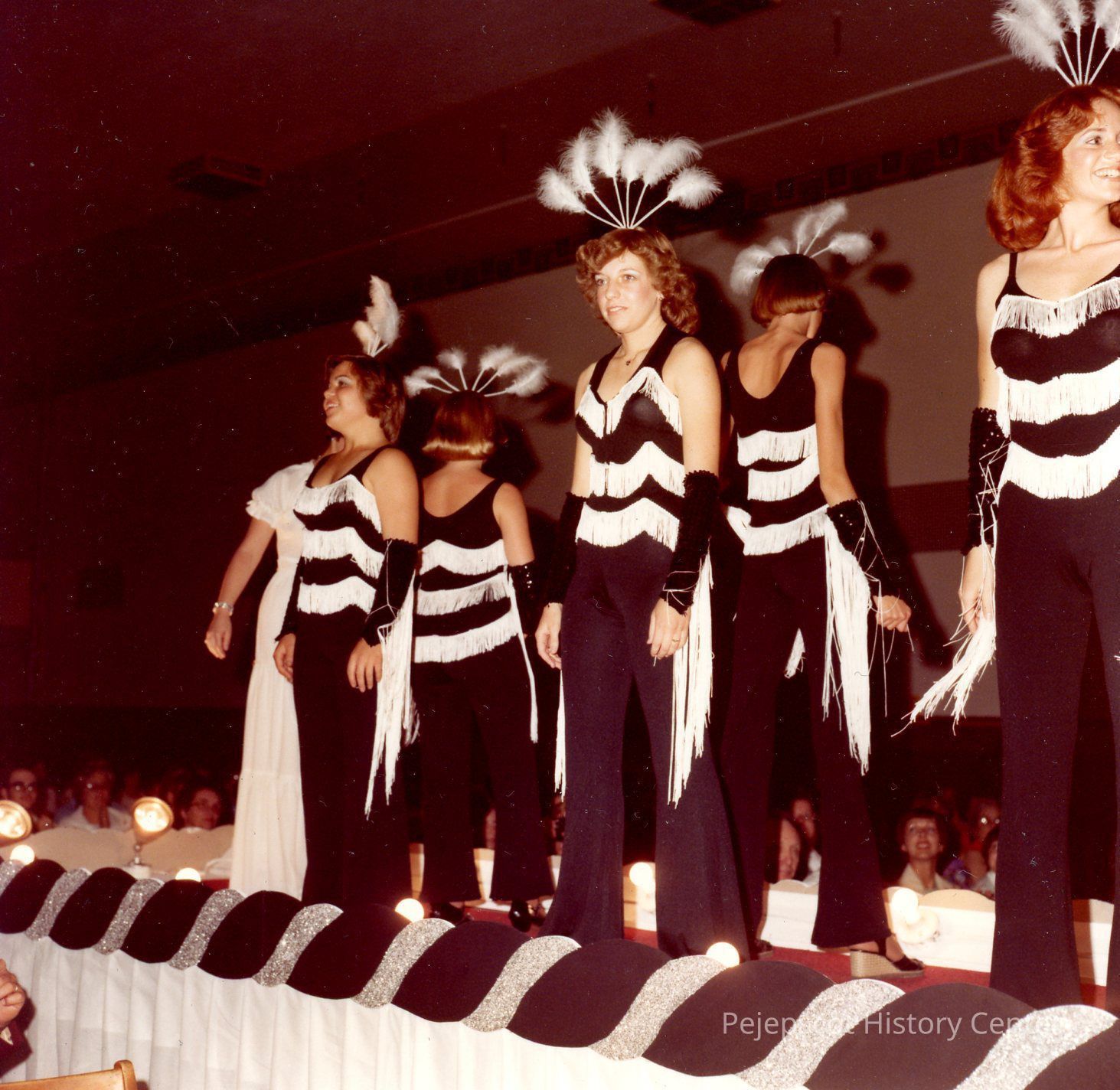 Brunswick Teen Queen Pageant, 1978. End of opening number "Celebrate" on the ramp are Barbara Morgan, Joanne St. Pierre and Kathleen Jarrell.